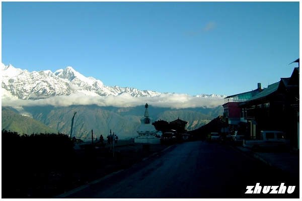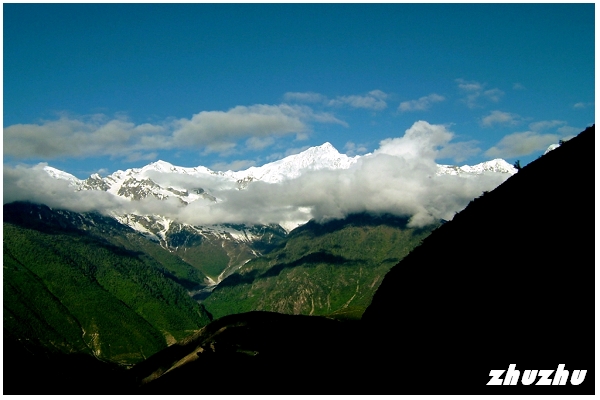 冰峰相連,雪巒綿亙;這些平均海拔在6000公尺以上的雪峰就有13座,就是所謂「太子十三峰」 再上驢車,繼續滇藏路上的艱苦行程