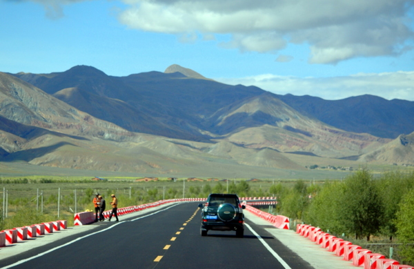 這段五個小時的車程,由於天已全黑,走的是S307省道,到江孜時再轉S204省道;這段五個小時的路程,主要是沿雅魯藏布江的支流年楚河谷北岸西北行。由於窗外一片驅黑,完全不知走過什麼地方;師傅將車內照明燈調暗,很快就進入一片沉寂之中,沒人說話,也沒有相機的喀嚓聲。只有淡淡的沉睡與巴士引擎轉動聲相互交織;團員累了,領隊導遊累了,公安也睡了,只有師傅繼續苦撐。 中途到達江孜曾車停一次,解決生理問題。江孜位於喜馬拉雅山腳下,原稱「傑卡爾孜」,意為「至高無上的王宮」。江孜是西藏歷史上僅次於拉薩、日喀則的第三重鎮,是連接衛和藏的樞紐。九世紀時,吐蕃王朝後裔認為這裡地形殊異,具有祥兆,便在山上建立宗堡。十四世紀薩迦王朝時重修了宮殿和宗堡,並起名為「傑卡爾孜」。江孜即為其簡稱「傑孜」的藏語變音,後來成為地名。江孜是西藏最主要的糧食生產基地,有「後藏糧倉」之稱。 清朝時的江孜宗政府設於宮堡內,於是便被叫作「宗山」。1904年,為抵抗英國軍隊進犯而在半山上修建了炮台等防禦工事,但面對實力遠強於己的英軍,據守此地的軍民最終被擊潰。江孜縣於1960年設立,隸屬日喀則市;除江孜宗山抗英遺址外,境內還有白居寺、帕拉莊園等古蹟。其中白居寺建於十四世紀末,寺內有多個僧學院,分屬藏傳佛教的薩迦派、噶當派和格魯派三大教派,極為罕見。 凌晨一時許,到達日喀則市;昏天暗地中,等領隊辦好入住手續,拿了房卡,什麼事都不管,回房倒頭就睡。這就是為什麼這個行程我不當領隊的原因,太辛苦,責任太大,變數太多,所得太低(除了出差費,什麼購物提成都沒);花錢當客人,享受別人的服務,不必擔上太多的責任。很多遊人以為領隊不花錢,可以周遊世界,是夢想中的工作;我通常只能回應:「有夢最美,無知最樂」。 或許是真累了,一夜好眠;早晨拉開窗簾,就看到窗外是一棟藏式的牌坊,上書「德慶格桑普彰」;查了網路資料,原來是班禪喇嘛的夏宮。1989年1月28日,十世班禪額爾德尼就是在這裡圓寂的。1954年,洪水沖毀了原有的夏宮貢覺林卡,因此修建了這座新夏宮,雖然沒有參觀,但應該和拉薩的羅布林卡差不多吧。早餐前走到新宮大門時又大失所望,新宮暫不對外開放!只能望門興嘆了! 知道日喀則,是因為是班禪喇嘛的駐地,也是西藏第二大城。境內定日縣有世界第一高峰-珠穆朗瑪峰;有西藏三大聖湖之一的羊卓雍湖;桑珠孜宗堡和江孜古堡都是曾經的政教中心。有札什倫布寺、白居寺、薩迦寺等著名寺廟。公元七世紀初,雅礱部落的松贊干布建立吐蕃王朝,按照地理環境劃分「衛、藏」兩大部分。日喀則的「藏」區為「耶如」(年楚河一帶)和「如拉」(雅魯藏布上游沿岸),東以崗巴拉山為界,西至岡底斯山(現阿里一部分)。因「藏」區地處雅魯藏布江上游,故稱「後藏」。日喀則稱「年曲麥」或「年麥」(年楚河下游的意思) 八世紀,吐蕃王朝的藏王赤松德贊請印度高僧蓮花生進藏建桑耶寺,路經日喀則地方,在此修行講經,並預言雪域高原的中心在拉薩,其次在年麥(日喀則)。十四世紀初,大司徒絳曲堅贊戰勝薩迦王朝,建立了帕竹王朝,設了13個大宗溪,最後一個宗便叫做桑珠孜(意為如願以償,選址在日喀則),取名為溪卡桑珠孜。元至正二十年(1360年)在宗山建造桑珠孜宗堡。從此,日喀則的全名稱溪卡桑珠孜,簡稱為溪卡孜,漢語譯音為日喀則。日喀則已開通火車,3個小時即到達拉薩;繼拉日鐵路之後,日喀則通往尼泊爾和印度的國際鐵路也將開通。 今日行程是前往薩嘎,全程447公里,以限速40km/h來計算,約需12個小時車程;預計下午二點在拉孜午餐。拉孜距離日喀則150公里,行車時間亦需約4-5小時。所以,雖然昨日行程凌晨才到酒店,但早上還是九點出發,此時天才甫亮(拉薩與北京有三個時區差別),團友們早餐時猶睡眼惺忪。領隊說,沒睡夠沒關係,今天一天沒有景點,全都是拉車車程,在車上可以好好補眠睡個夠。 旅遊巴士一路飛馳(沒超過40km/h),日喀則經拉孜到薩嘎車程長,全程感受的就是荒野之美;這段路2005黏我首次自駕時,就曾想自駕車走上一遭,可惜當時219國道只是一條車輒道,只能黯然放棄,如今可謂得償宿願。一路西行,大地遼闊,雪山延綿,湖泊空靈,彷彿時光倒流回一百萬年以前,就像進入了史前時代混沌未開的世界;一路上窗外都是千里茫茫的雪山,在大自然的面前,人越發變得渺小,心靈卻變得越來越寬廣,而心中只有虔誠與敬意。 這一路美得不知用何文字形容的美景,除了說「好美」、「好偉大」外,就只能張大嘴巴-「哇!」瞠目結舌。所以這段被旅遊界稱為中國最美的景觀大道;繼續西行,沿途各種地形,有平原、丘陵、山地、草原、高原、冰川、森林等等。氣候也是變幻莫測,一日四季是最明顯的表現,一路要翻過海拔4、5000公尺以上的高山,一路上風光旖旎,一路上風吹日曬,一路都是眼睛在天堂,肉體在地獄。 在拉孜縣的群山美景,特別的是富含礦物質的顏色呈現之中,來到318國道5000公里紀念碑處,才想起這裡是國道318從上海人民廣場到西藏拉孜強公村5000公里處,橫跨上海、江蘇、浙江、安徽、湖北、重慶、四川、西藏八個省市 (其實318國道全長5486公里,終點是樟木友誼橋) ,是大陸唯一超過5000公里的國道。318國道大體沿著北緯三十度由東向西跨越中國地理上的三大台階。 318國道從東海之濱,一直爬升到海拔超越4000公尺