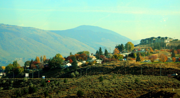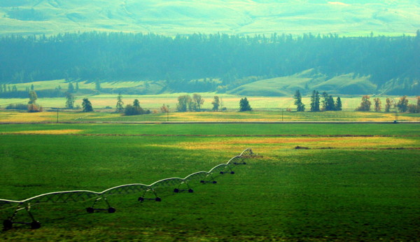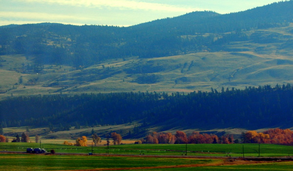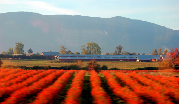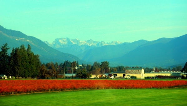 休息過後,我們也將從1號公路,進入5號公路,前往甘露市;距離大概還有204公里,典型的旅行團拉車行程,讓睡眠不足的旅客能獲得補眠的機會;也讓我這種好奇的旅人,有不斷拍照的機會。5號公路主要指的是從Kamloops到Jasper的一段,從Mt Robson到Jasper需要轉16號公路。五號公路的地形地貌,與一號公路區別不大,只是山區裡的路更窄,視野更差。 離開希望鎮後,旅遊巴士就轉向5號公路,地貌也逐漸離開低平河谷,慢慢的往洛磯山脈前進;不過公路二旁,農業活動還是很興旺,特別是藍莓園,正是收穫時期,陽光照射下,耀眼的紅在大地上喧賓奪主,掩蓋了人市間所有的顏色;對來自台灣的旅客言,更是難得一見的美景。
