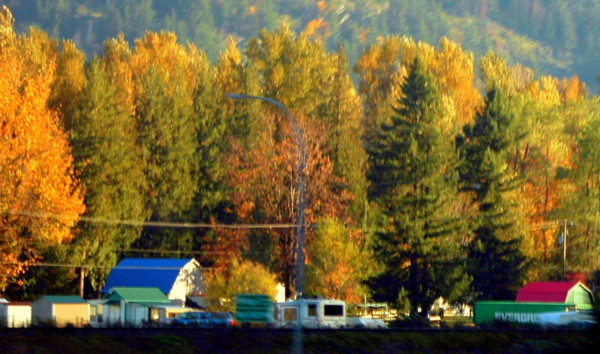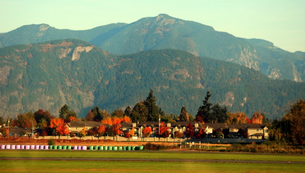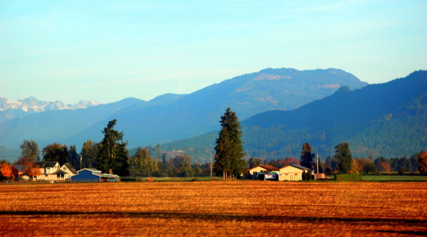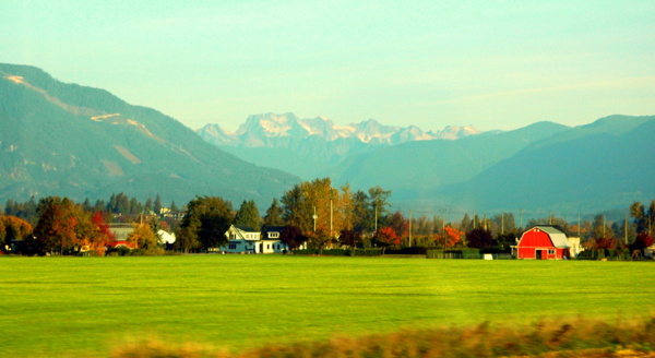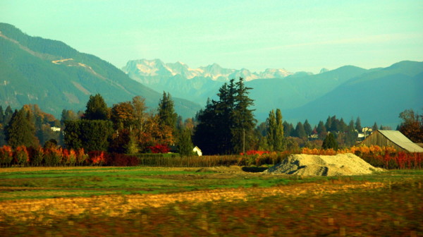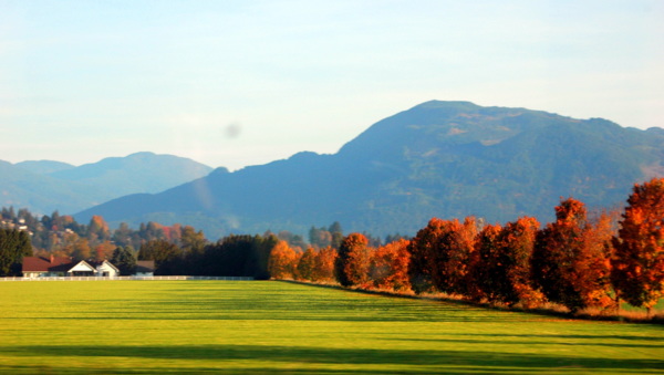 加拿大地大物博,自然風光多樣化,景致宜人,遠處層巒疊嶂、嵐霧飄渺、湖光水色,美不勝收。間有農莊、牧場散布在大地之上;時序雖是深秋,但山野青草仍然翠綠;間雜有不甘寂寞,率先吐黃露紅的楓槭,使得秋的顏色,照滿五花山巒。這樣的景緻,都托福於陽光的充足,即使傻瓜相機隨手拍攝,也張張佳色。