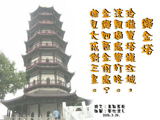 繩金塔  绳金塔位于南昌市绳金塔街,始建于唐天佑年间,是市内最高的古建筑。相传,建塔时在地下挖得“铁函”一个,内装金绳四匝、古剑三把、舍利子三百粒,故称“绳金塔”。清康熙戊子年(1708年)塔圮,癸己年(1713年)重建。塔身八面七层,高58.7米,底周长33.8米,每层飞檐回廊,八面均有拱门相通,楼梯直通顶层。塔顶为铜胎鎏金镇火鼎。 江西的省会城市南昌,是一座有两千多年历史的文化古城,它有着底蕴深厚的赣文化背景。然而,虽有着众多的旅游、文化景点,南昌却没有一个地方像城隍庙、夫子庙那样,既能集中体现江西饮食文化特色,又能动感展示赣文化的风采。作为一个有深厚文化积淀的城市,这一点让许多市民感到遗憾。 庙会,亦称庙市,是中国的市集形象之一,唐代便已存在。它是中国民间长盛不衰的文化活动,只是在日新月异的变革和人民观念的更新中,其宗教活动色彩已日渐退却,现代庙会凸显更多的是文化价值和经济价值。  南昌人也有了自己的庙会!耍猴玩蛇,吹拉弹唱,枪棍杂耍等等,这些早已成为许多上年纪人的回忆,首届绳金塔庙会的举行,重又被南昌人提起、想起、说起。绳金塔庙会,融合了“吃、购、娱、乐”,汇聚了各地民俗风情,吸引了全国各地商贾,一定是格外热闹。
