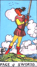 <寶劍侍衛>噓~我跟你說…ㄚ你不要跟別人說喔! 抽到寶劍侍衛,可以預料今天是八卦的一天。 有時候我們不得不用社交的心態,跟同事們一起東家長、西家短。 今天討論的主題是「為什麼永遠比稿失利…?」 A:「還用說,我們家XX報黨派太明顯又過時,客戶不會買單…」 B:「老闆老是偷工減料,客戶根本討厭我們…」 C:「我們的價錢又硬又貴,老闆眼裡只有錢…」 D:「老闆什麼都不懂,根本不賺錢的東西也接回來做….」 E:「什麼都要比價,老闆比到最後一刻根本沒時間發包廠商…」 F:「只要老闆插手的案子,一定比不到啦…!」 A、B、C、D、E、F嘰嘰喳喳、嗚哩哇啦: 「短視近利,我們公司沒救啦!…」 看來A、B、C、D、E、F都比老闆還會做老闆。 閒言閒語說起來既開心又不必負責任,而且只要老闆沒聽到, 月底大家還是臉皮厚厚的領薪水。 為了表示跟大家同一國的,只是小職員的我們, 只要加入八卦陣容就對了,因為每個公司都在說老闆壞話呢。 寶劍侍衛牌意: 寶劍侍衛是個20歲左右的孩子,善於思考、機伶反應快、愛評論, 想到什麼就說什麼,像個狗仔隊,喜歡打聽小道消息, 然後像風一般的宣傳出去。