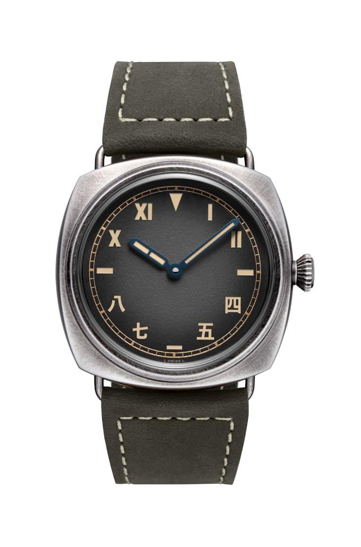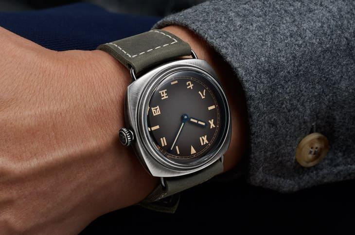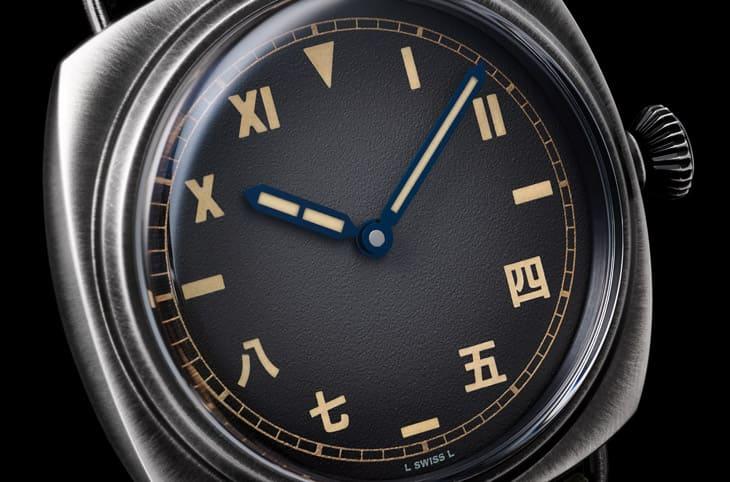 ▲採用Brunito不鏽鋼打造錶殼,手工拋刷呈現風化銅綠質感,每只錶殼皆具獨特歲月痕跡與溫潤復古氣息。 沛納海創作這款作品時的主要靈感可追溯到品牌最早期的軍錶歷史,1940年代,沛納海為義大利皇家海軍打造潛水錶Ref. 3646,而那時的面盤設計正是出自勞力士的「加州面盤」(California Dial)概念:上半部羅馬數字、下半部阿拉伯數字,兼具辨識性與實用性。如今,PAM02088在這個經典架構上大膽創新,將下半部的阿拉伯數字改為中文時標,保留上半部羅馬數字配置,形成品牌過往前所未見的「半羅馬、半中文」對稱格局。這樣的組合,不只是視覺亮點,也象徵著東西文化的交融與對話。