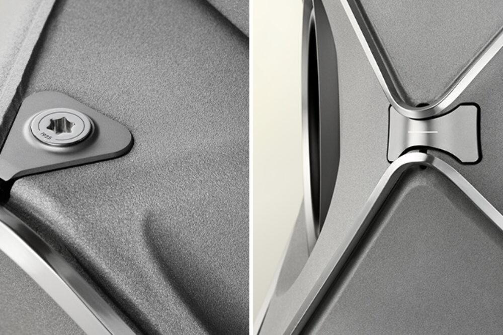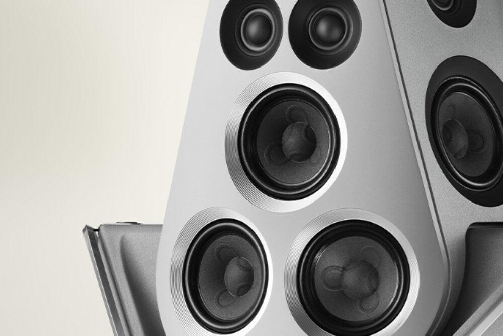 Titan Edition 出自 B&O 最高階的 Atelier 訂製部門,這裡專門替預算無上限、追求唯一性的玩家打造超限量作品。這次為百週年推出的版本把原本的聲學網罩完全移除,以火山岩噴砂處理、拋光底座與長達 12 小時 CNC 切削工序,展現 Beolab 90 本來就極其複雜的結構工藝。連螺絲、單體周圍的金屬紋路、光學孔洞都做了特別設計,讓這對喇叭看起來像一件由聲波雕刻出的雕塑。
